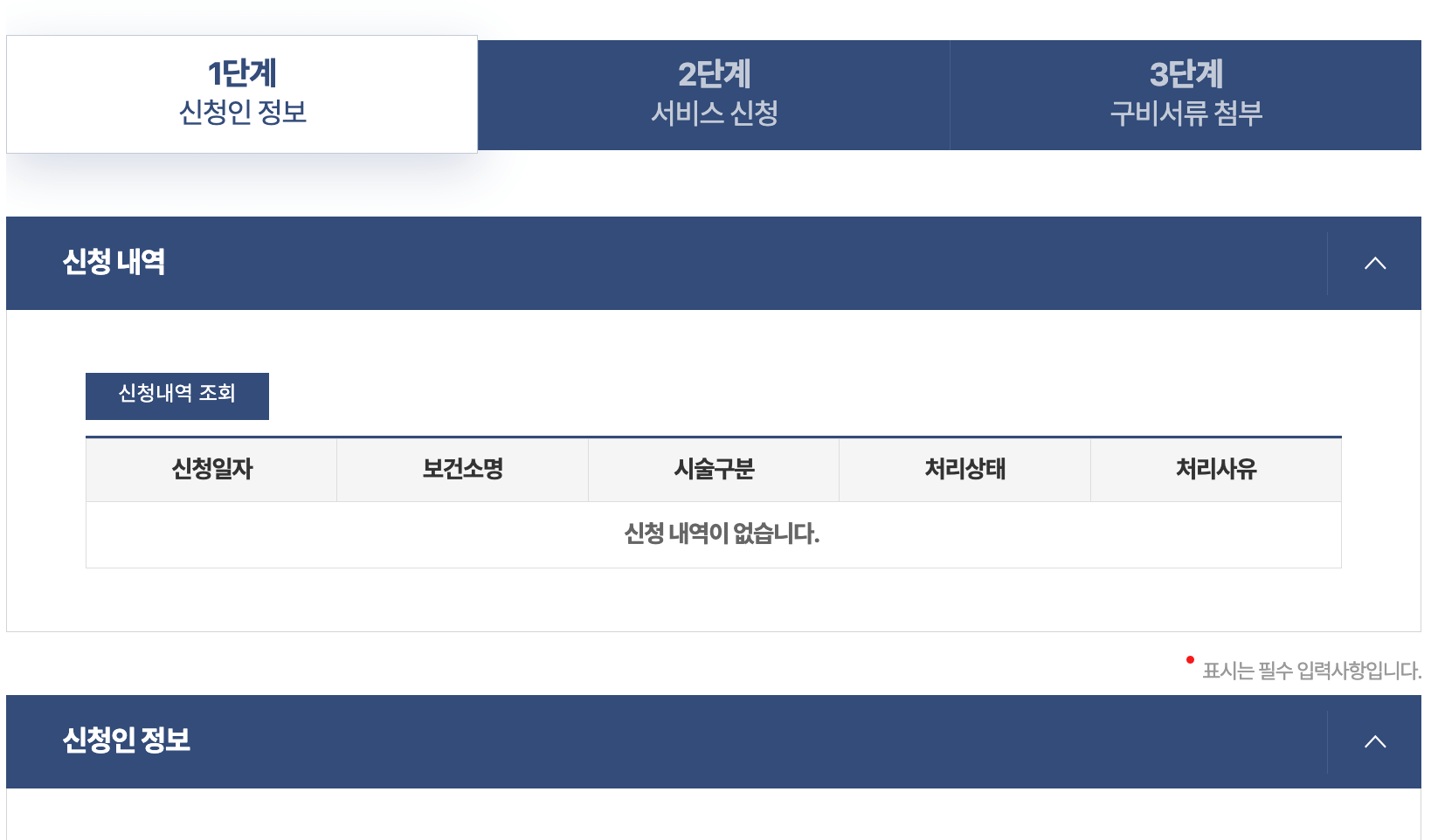 *처음 신청시 3단계에 필요한 첨부파일을 정상적으로 첨부해 주셔야 정상적인 처리가 가능합니다.