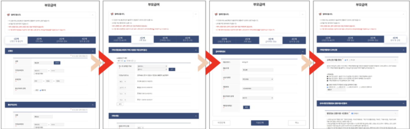 2. 각 단계에 개인정보를 잘 작성하시고 신청서를 제출하시면 되겠습니다!